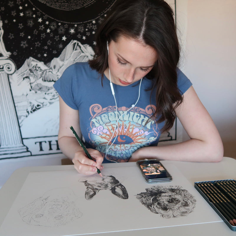 I’ve loved drawing for as long as I can remember, but I started taking it seriously when I was 15. The idea of selling my art never crossed my mind until a friend asked me to draw her new puppy in 2019. I set up my online shop shortly after, and I’ve been creating custom portraits ever since.
